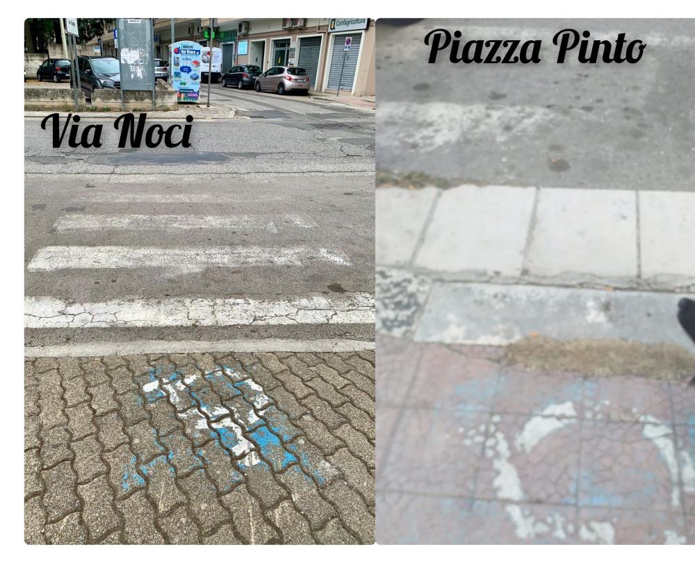 In zone di traffico più intenso, come via Noci e le sue intersezioni, attraversate da autobus e mezzi pesanti, le strisce pedonali sono quasi del tutto scomparse, e in alcuni casi non sono mai state ripristinate. Il contrasto è evidente: proprio dove il rischio per i pedoni è maggiore, l’attraversamento sicuro è trascurato. Un esempio significativo è dato dalla presenza di uno scivolo per disabili in questa stessa area, che permette l’attraversamento, ma le strisce sono ormai sbiadite e quasi invisibili. Stessa cosa accade per lo scivolo di Piazza Pinto. Non si tratta solo di un problema estetico, ma di una questione di sicurezza pubblica, che riguarda soprattutto i pedoni più vulnerabili. Oltre che rappresentare un evidente pericolo per l’incolumità pubblica, l’assenza di strisce ben evidenti disabitua i pedoni ad usarle e gli automobilisti a rispettarle.